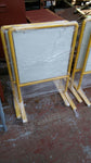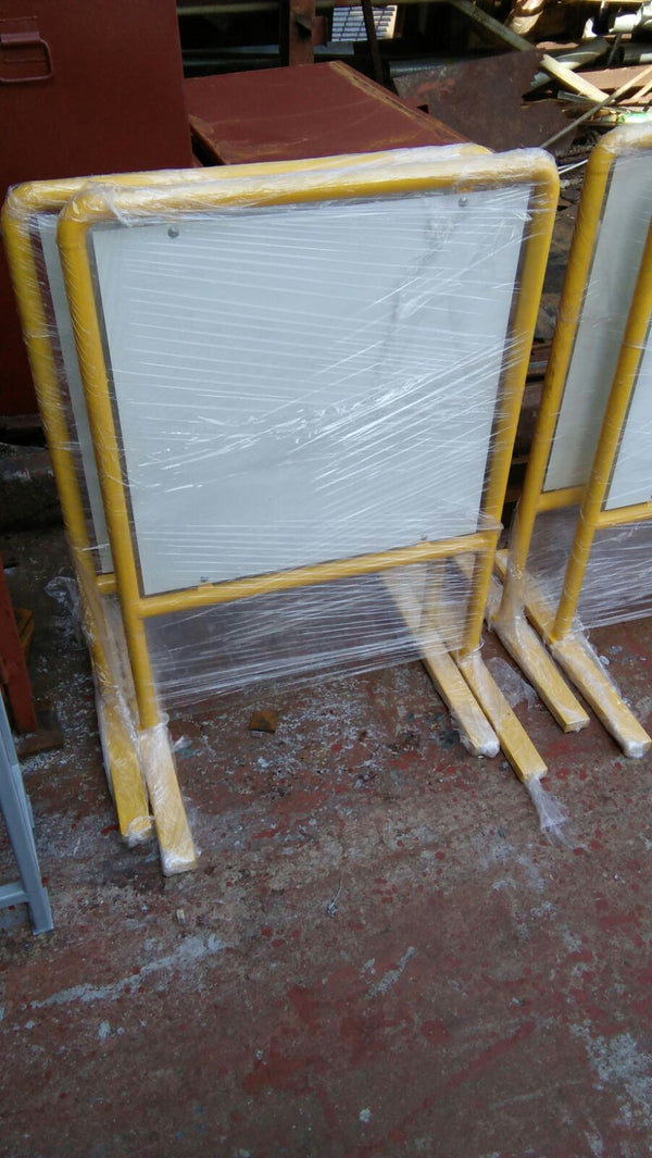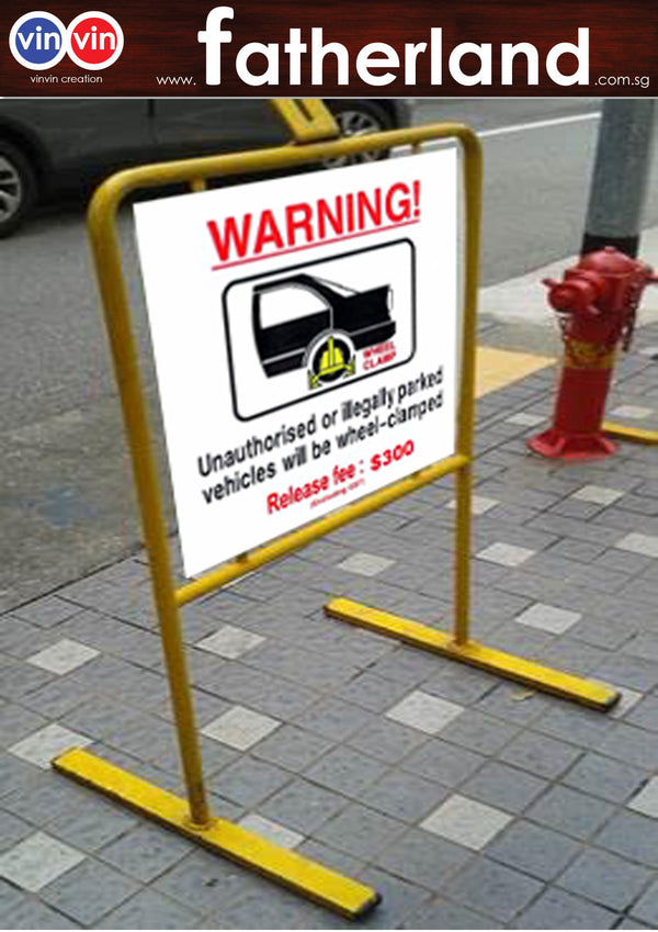 vinvin creation able to custom to your detail needs stands  OUTDOOR STANDING STAND WITH YELLOW PAINT  ALUMINIUM SIZE : 600 X 600MM  THICKNESS : 1.5MM  STAND MATERIAL : STEEL  PAINT...