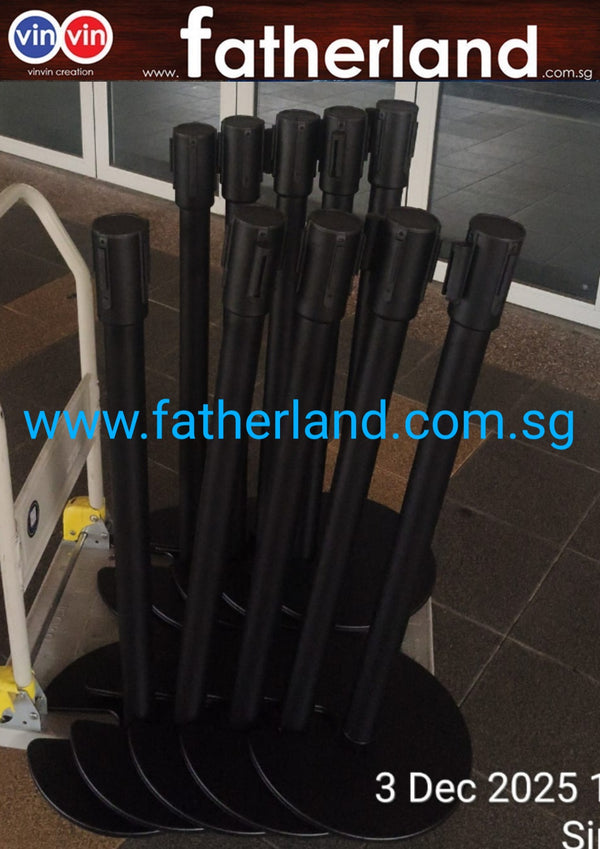 Stackable Queue Pole Black Pole - Black Belt ( vinvin2021 series ) Ideal for any effective crowd direction and control. 900mm meter height with U diameter base and 2 meter long belt for fast,...