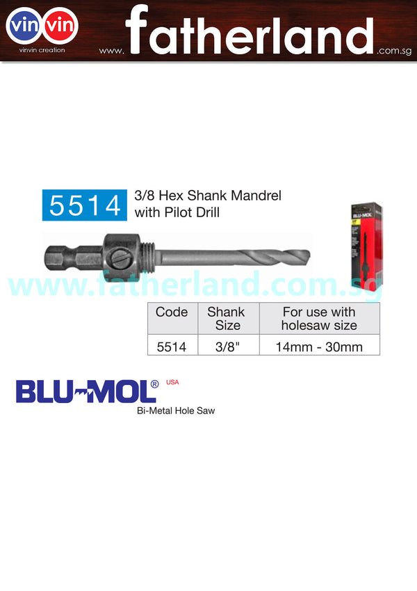 BLU-MOL 5514 3/8" 9.53MM HEX SHANK MANDREL W/PILOT DRILL