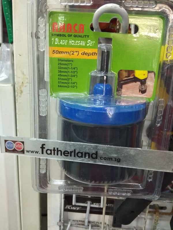 7Pcs Deep Hole Saw Set 2" Thank you for visiting www.fatherland.com.sg. For Retail Experience. Kindly visit our dealer  Motherland Hardware Electronic Address : 51 Havelock Road #01-03 Singapore 161051Tel : 67374273 /...