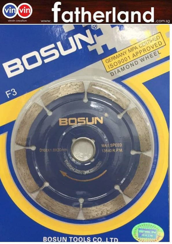 Bosun F3 4I Dia/Whee BOSUN DIAMOND WHEEL DRY CUT F3-105MM (B6145) Thank you for visiting www.fatherland.com.sg. For Retail Experience. Kindly visit our dealer  For Bulk Wholesale and Project Purchase, kindly email...