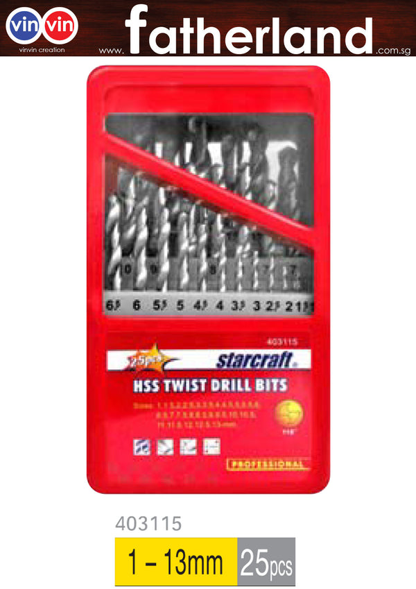 STARCRAFT DRILL BIT SET 25 PIECES 1mm to 13mm Use for metal and wood and plastic