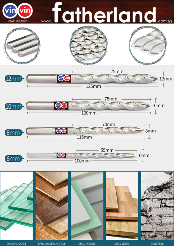 VINVIN TRIANGLE MICRO SPIRAL MARBLE AND GLASS DRILL AND CONCRETE