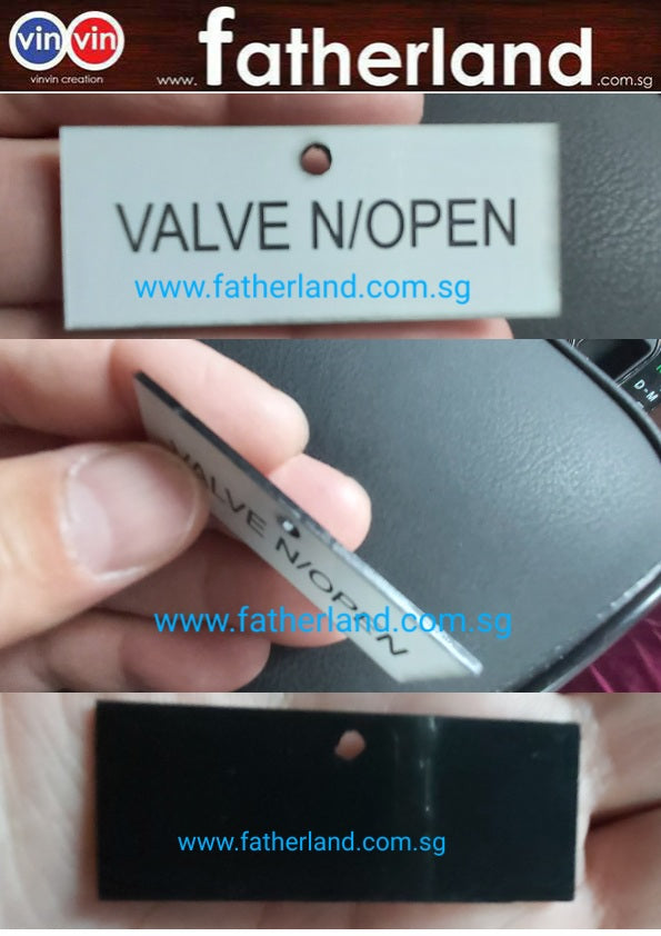 Valve open tag  Size 50 x 20mm  Laser Engraving  Thickness  Material :  Thank you for visiting www.fatherland.com.sg. For Retail Experience. Kindly visit our dealer For Bulk Wholesale and Project Purchase,...