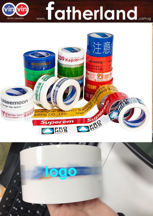 • vinvin logo Packing Tape. Create your own custom branded packing tape printed with your business logo! The perfect way to brand boxes you are shipping to clients. Available in white or clear, custom packing tape has a strong adhesive that sticks to any surface and securely seal your packages.