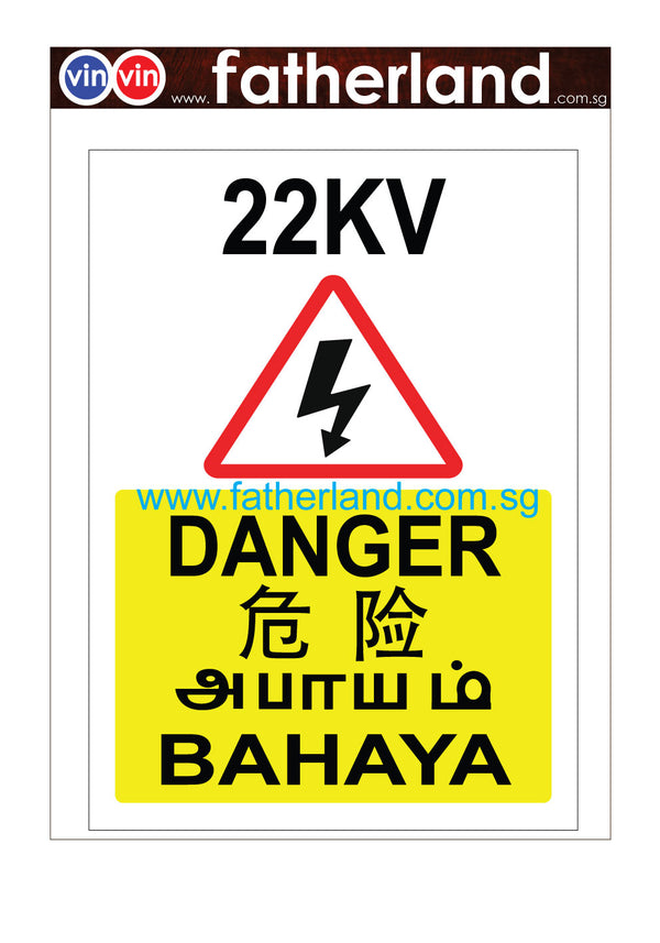 22KV Danger 4 Language  Size : 10 x 14 inches  Lamination : Outdoor Anti UV Matt  Media : Outdoor  Ink : Outdoor Solvent .  Material: Outdoor Sticker with Anti UV Matt...