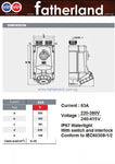 Plug For 63A 5P 6H  watertight ip67 with switch and interlock conform to IEC60309-1/2 Current 63A  Voltage : 220-380V / 240-415V