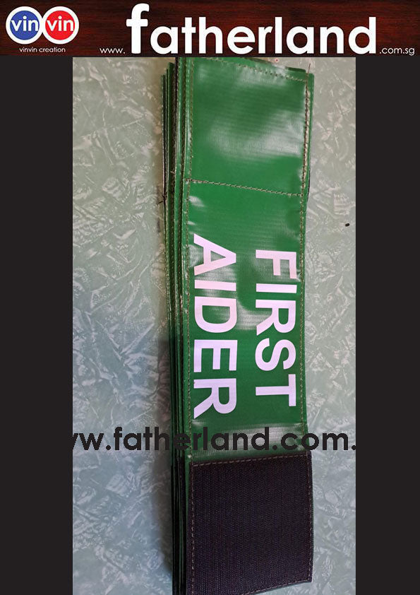www.fatherland.com.sg armbands are made of PVC material and widely used in schools, industrial and commercial premises, and others special occasion. For additional comfort and armband strength, the First Aiders armband comes with sewn-turned edges and an adjustable velcro closure for easy wear and adjusting for different size to cater arm size.