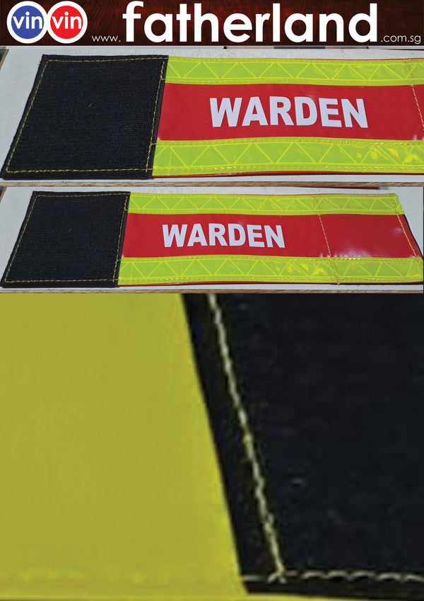Armband - Warden with Yellow Reflective   Arm Band Model : PW-AMMaterial : Waterproof Wording : Given by user  Layer = 1 Other Option  fire wardens, fire coordinator, asst. fire coordinator, ...