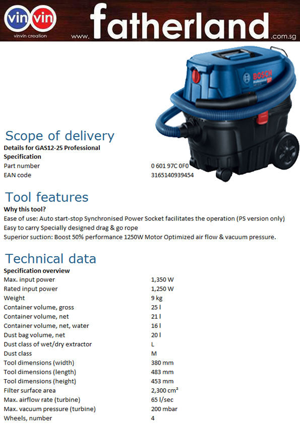 BANSOON BOSCH GAS 12-25L Professional Wet/Dry Vacuum Cleaner 1350W. First model with patented self-clean technology Superior suction power with innovative self-cleaning technology.Consistent & powerful suction: Patented “self-cleaning” technology cleans filter...