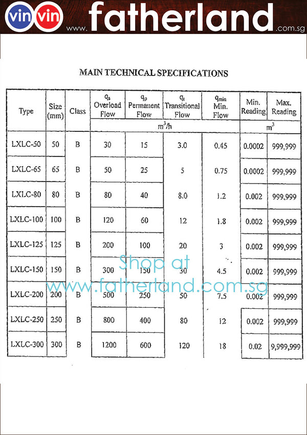 Capri Hot Water Meter Model : LXLC Cast Iron Body “flanged end” Bore size : 50mm JIS10