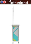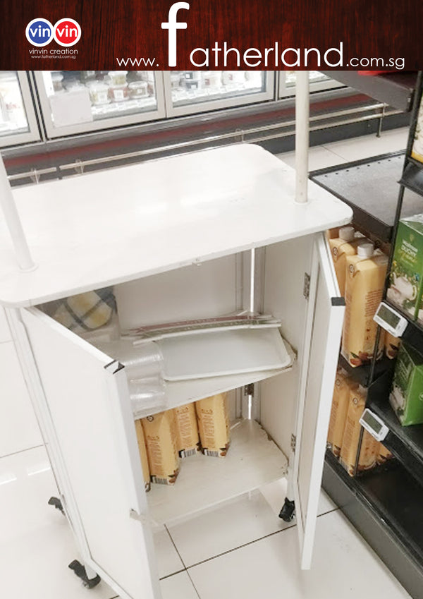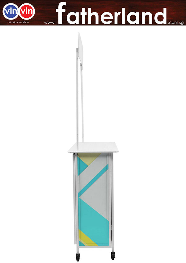 Product Highlight: Great for  demo, distributing of  or as tester counter. Metal frame provides extra durability and stability. Come with door and wheels. Fast and no tool required to set up. carrying bag included....