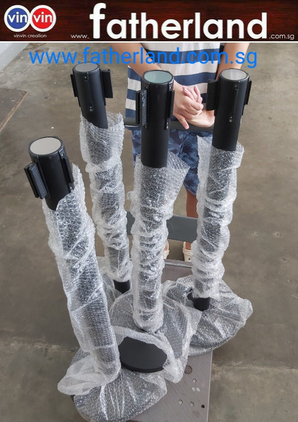 Stackable Queue Pole Black Pole - Black Belt ( vinvin2021 series ) Ideal for any effective crowd direction and control. 900mm meter height with U diameter base and 2 meter long belt for fast,...