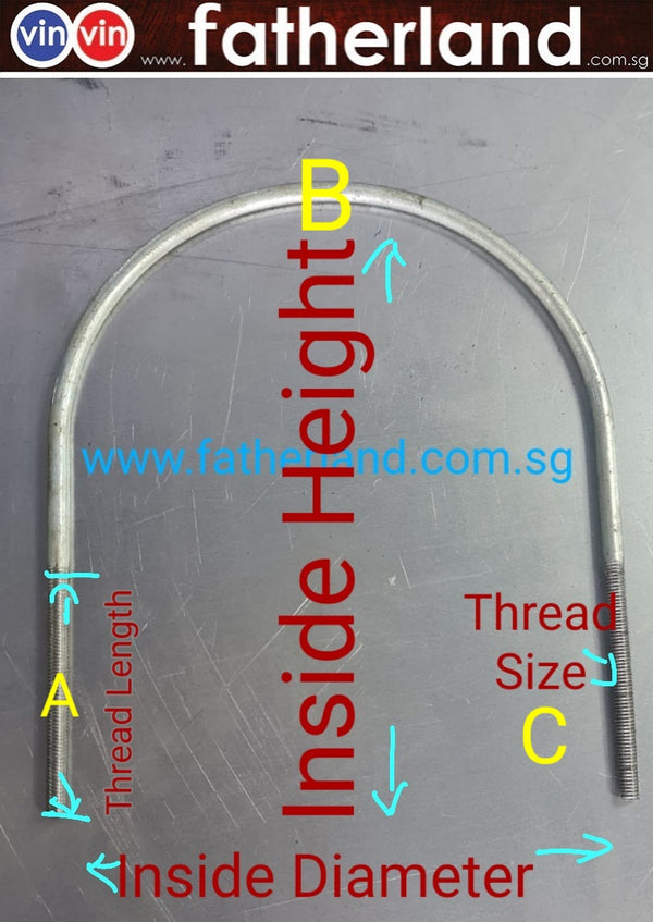Stainless Steel 304 U bolt Size : 8 inchesA =100B =300C =220 Rod = 9mm Comes with 2 Stainless Steel Nut and Washer  U-bolts are metal rods bent into the...