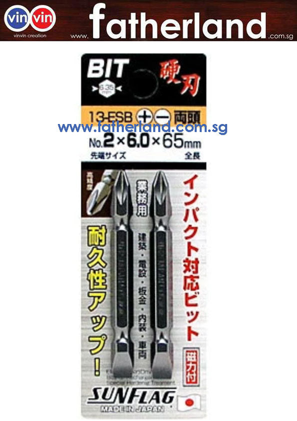Sunflag Magnetic Combination (+)(-) Power Bit (13-ESB) Size : 65mm Made of high degree special steel. For manual or power drive.Made in Japan Item Hex Dr Size (mm) Length (mm)...