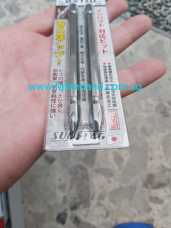 Sunflag Magnetic Combination (+)(-) Power Bit (13-ESB) Size : 110mm Made of high degree special steel. For manual or power drive.Made in Japan Item Hex Dr Size (mm) Length (mm)...