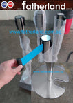 Stackable Stainless Steel Queue Pole with Blue Belt ( vinvin 2021 series ) Ideal for any effective crowd direction and control. 910mm meter height with U diameter base and 2 meter long belt for...