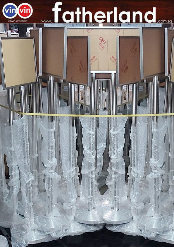 Vinvin A4 Stainless Steel landscape Sign Stand ( Model : Vin-A4-LP ) Finishing : matt stainless hairline finish with 2 pcs clear perspex acrylic sheet  Height = 1350mm Weight =...