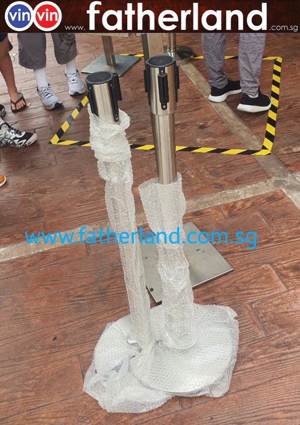 1 meter height with C cut shape base and comes with a 2 meter long belt for fast, flexible and easy set up.