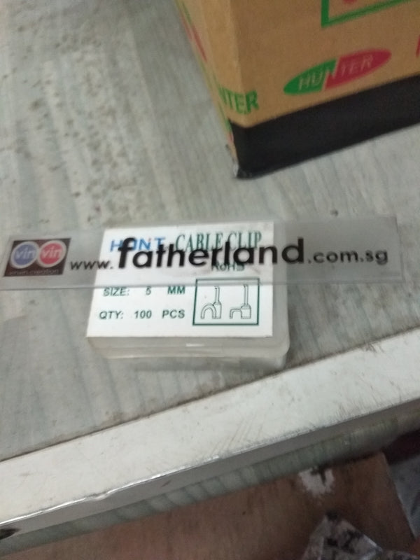5Mm Cable Clip 100Pc/Box Thank you for visiting www.fatherland.com.sg. For Retail Experience. Kindly visit our dealer  Motherland Hardware Electronic Address : 51 Havelock Road #01-03 Singapore 161051Tel : 67374273 / 67349157 /...