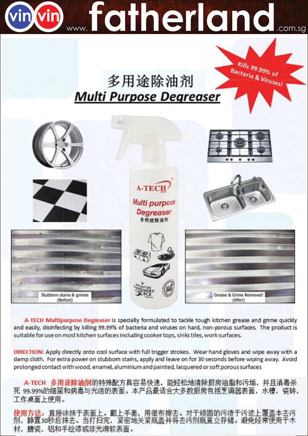 Multi-Purpose Degreaser Thank you for visiting www.fatherland.com.sg. For Retail Experience. Kindly visit our dealer  For Bulk Wholesale and Project Purchase, kindly email to ilovefatherland@gmail.com for more detail.