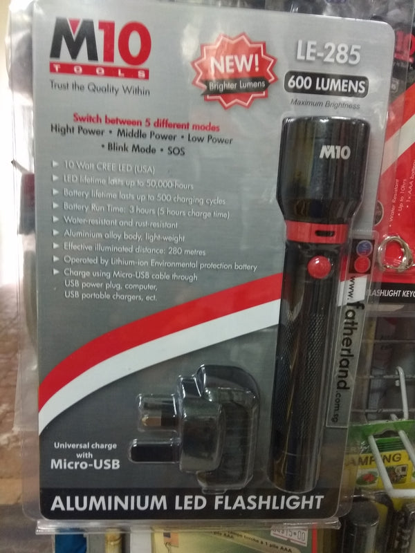 M10 Le-285 Rechargeble 3W Led Torch Light Thank you for visiting www.fatherland.com.sg. For Retail Experience. Kindly visit our dealer  Motherland Hardware Electronic Address : 51 Havelock Road #01-03 Singapore 161051Tel : 67374273...