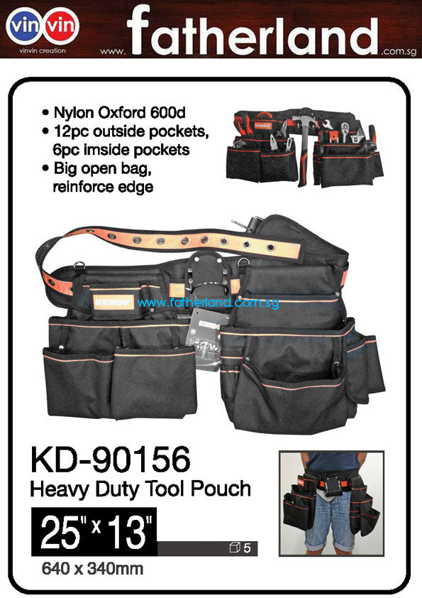 Kendo Heavy Duty Tool Pouch KD 90156 25" x 13"  640 x 340mm Characteristics: 600D oxford nylon Capacity contains: 12 outer pockets and 8 inner pockets