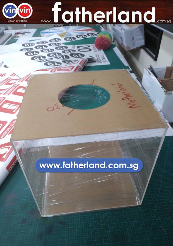To Supply Vinvin Clear Acrylic Lucky Draw Box with 2 pcs full. Colour logo with clear background provided by client. Picture for reference only   Comes with a big hole on...