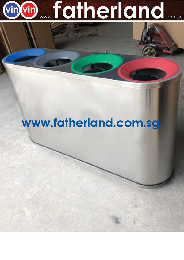 Stainless Steel Recycling Bin 4 compartments with inner liner & recycling stickers 1380×360×820mm Material : Grade 201 stainless steel outer barrel, with inner barrel galvanized sheet      Thickness :...